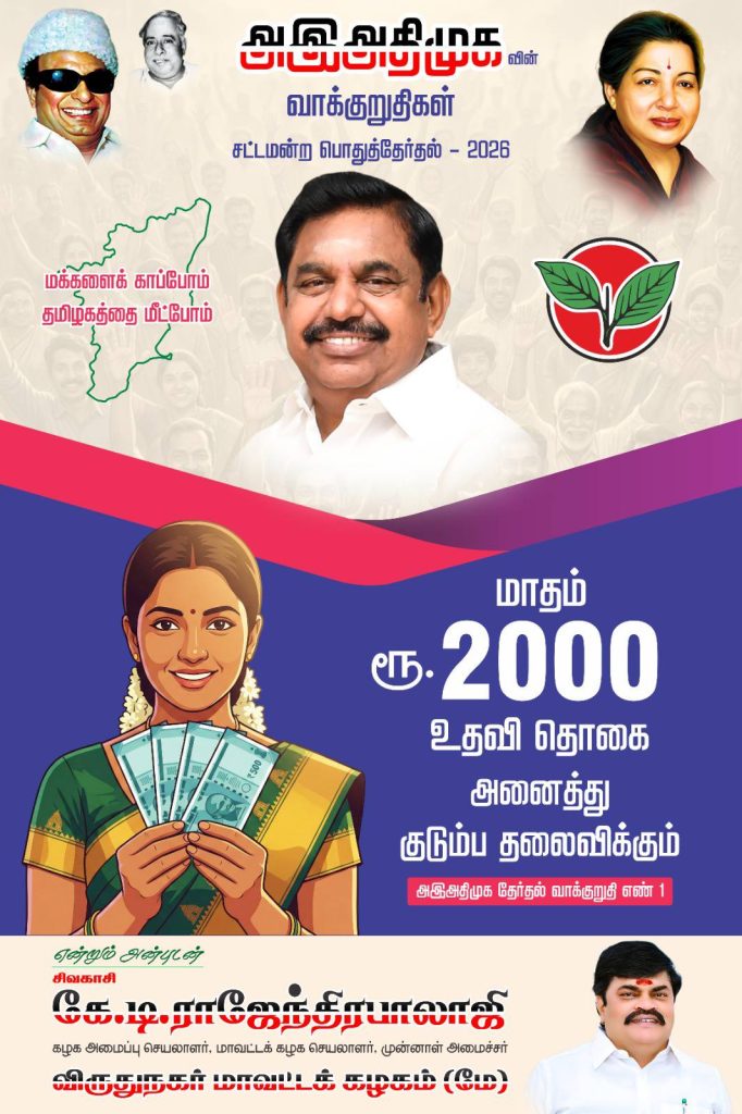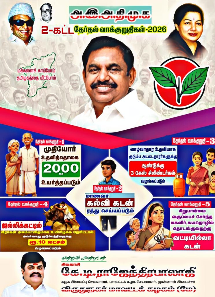 கே.டி. ராஜேந்திர பாலாஜி அவர்கள் , 2011 மற்றும் 2016 ஆம் ஆண்டுகளில் சிவகாசி தொகுதியிலிருந்து தேர்ந்தெடுக்கப்பட்ட முன்னாள் அமைச்சரும், தமிழ்நாடு சட்டமன்றத்தின் முன்னாள் உறுப்பினரும் ஆவார் .
