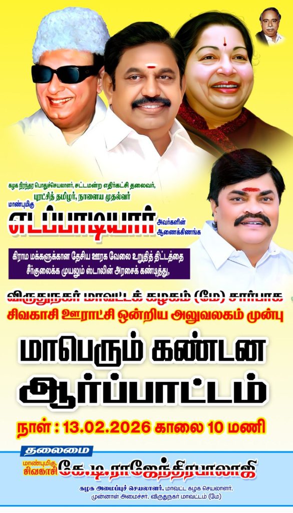 February 13, 2026 - In City News By sivakasiadmin 0 ஆர்ப்பாட்டம் Previous நிதியுதவி Next கண்டன ஆர்ப்பாட்டம்
