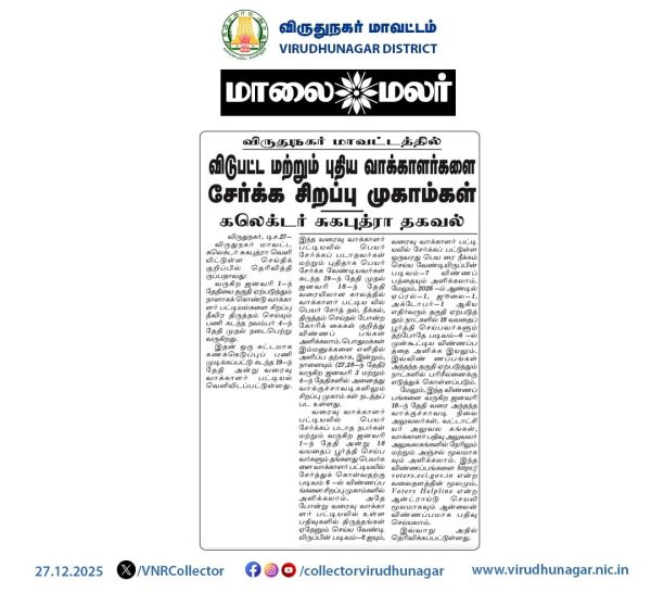 Provides the latest news, live updates, and reports specific to Sivakasi in the Tamil language.